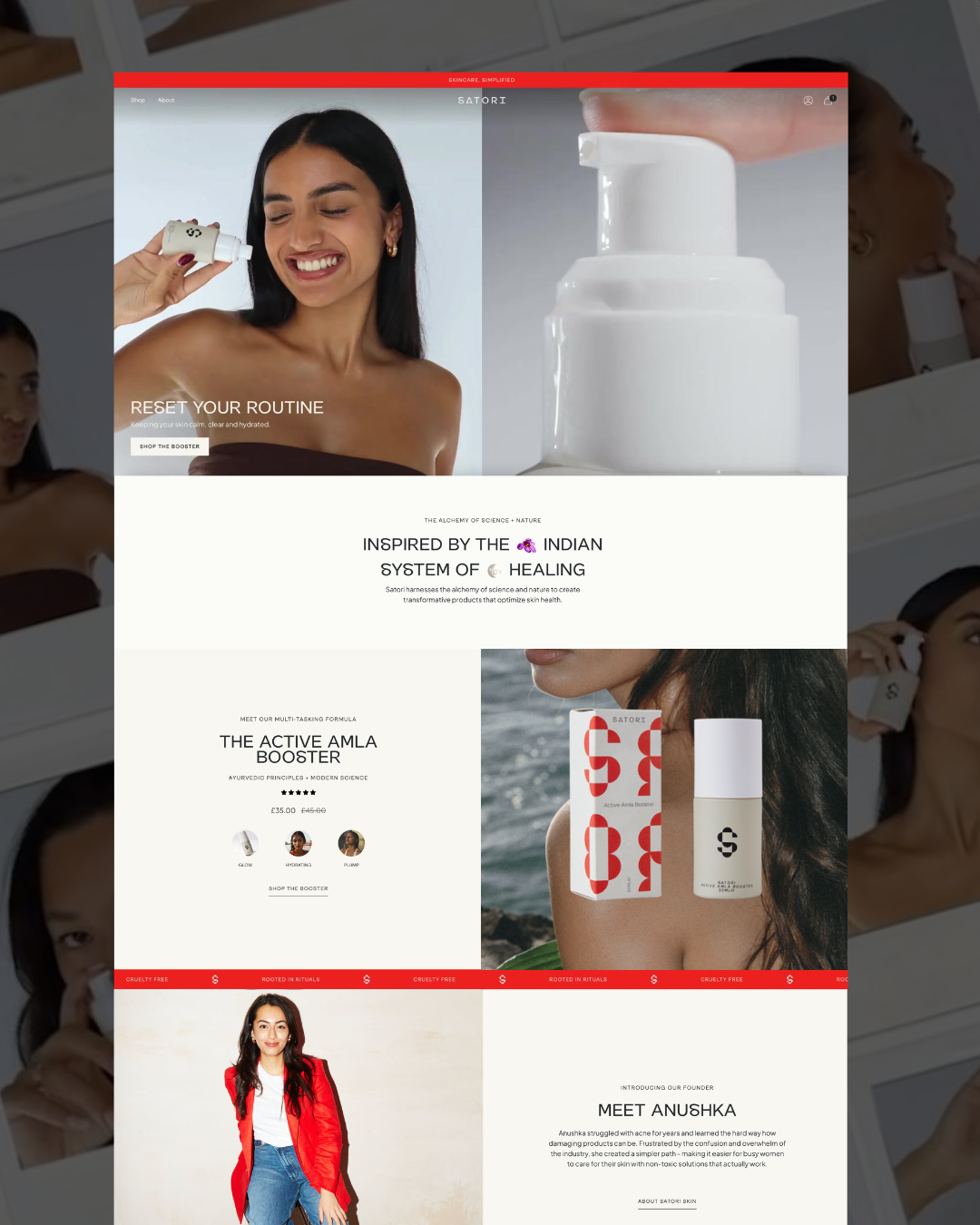 Satori is a skincare brand rooted in Indian traditions, blending botanical heritage with modern science. We began with a full site audit and strategy review - identifying friction points, product storytelling and trust signals for a redesign using their existing theme.